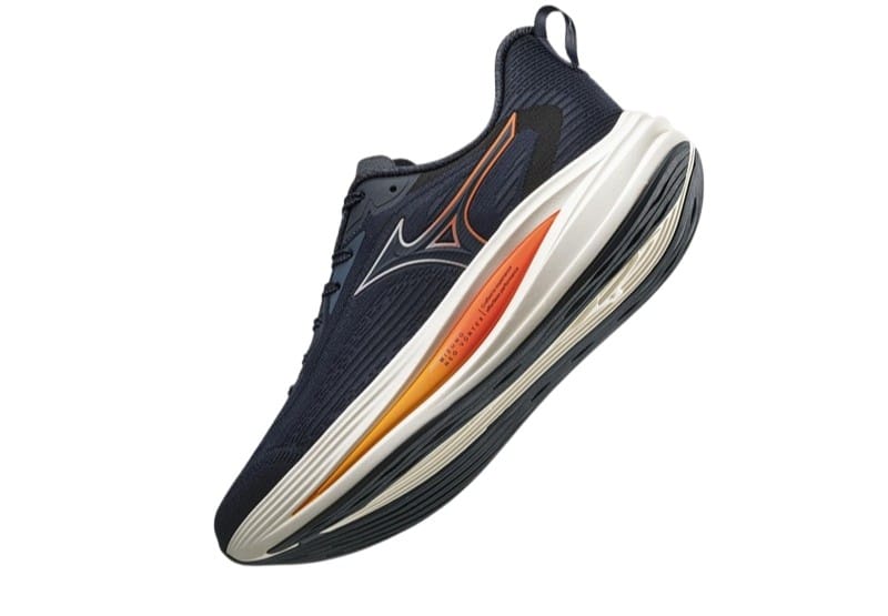 Mizuno Enerzy: tecnologia de entressola feita em EVA leve e macio com maior índice de amortecimento e retorno de energia.