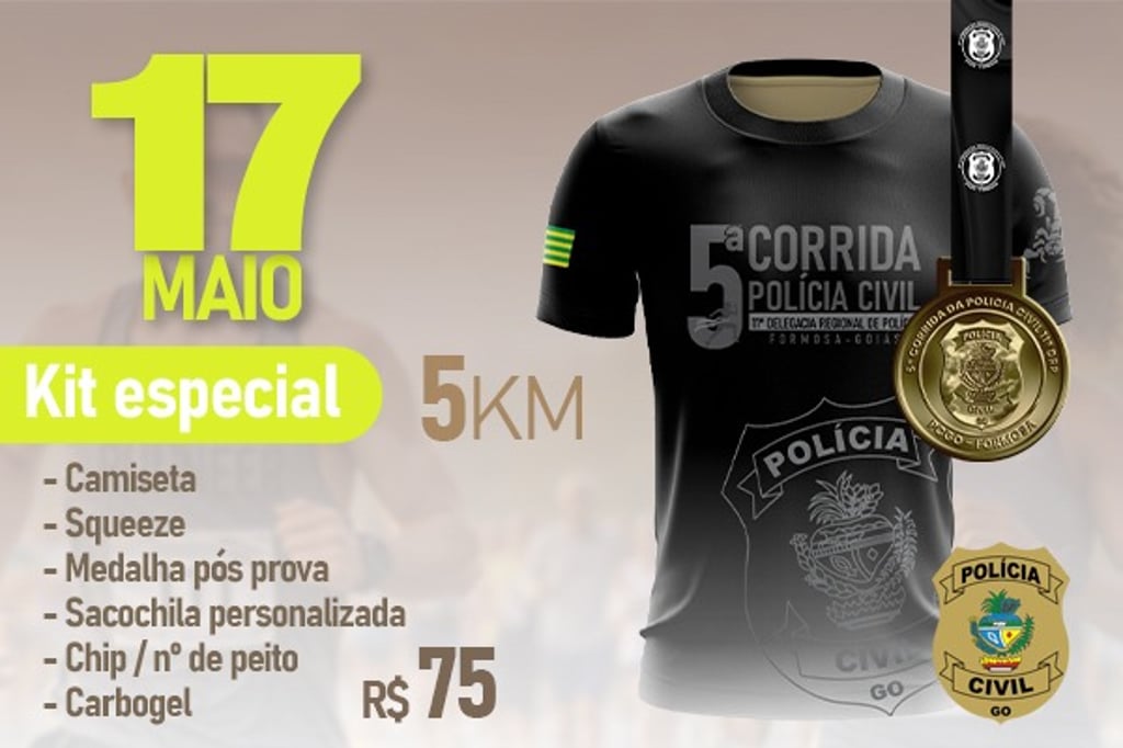 INFORMAÇÕES GERAIS5ª CORRIDA DA POLÍCIA CIVIL DE FORMOSA – GO DATA: 17 de maio de 2026Largada: 8hInscrições limitadas!Não fiquem de