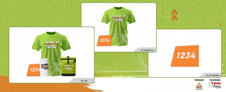 KIT VIP: Camiseta, mochila, toalha, número de peito, pós prova (medalha e lanche)