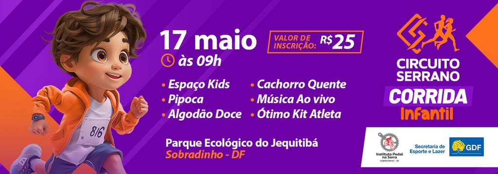 INFORMAÇÕES GERAISNome do evento: CIRCUITO SERRANO CORRIDA DE RUA E CAMINHADAData e hora: 16/05/2026 – 17:00Localização: Brasília – DF