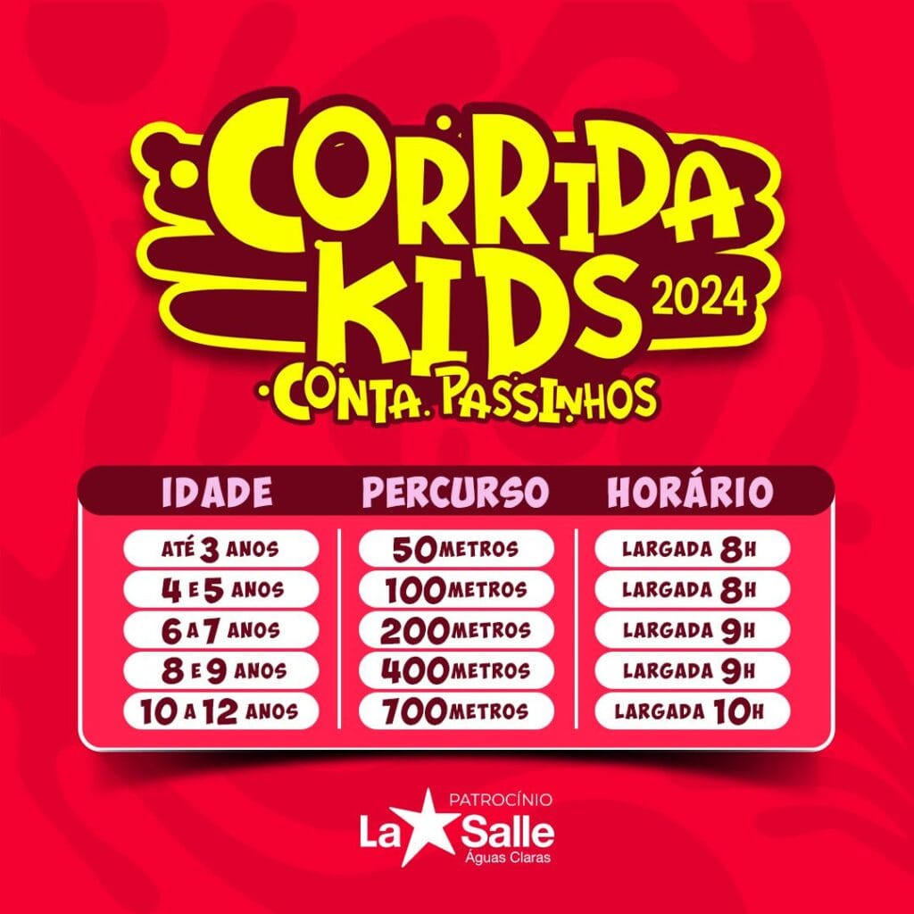 Atenção! A categoria da criança é de acordo com a idade completa atual, esta informação determinará as distâncias. Não favorecendo ou desfavorecendo crianças que completaram ou ainda vão completar aniversário, portanto crianças de 5 anos correm apenas com crianças de 5 anos … crianças de 10 anos correm apenas com crianças de 10 anos… e assim por diante.