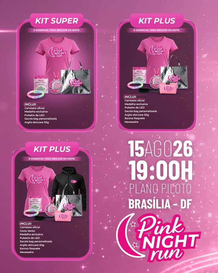 15ago19:00Pink Night Run19:00(GMT-03:00) Distância5km Plano Piloto – Distrito Federal